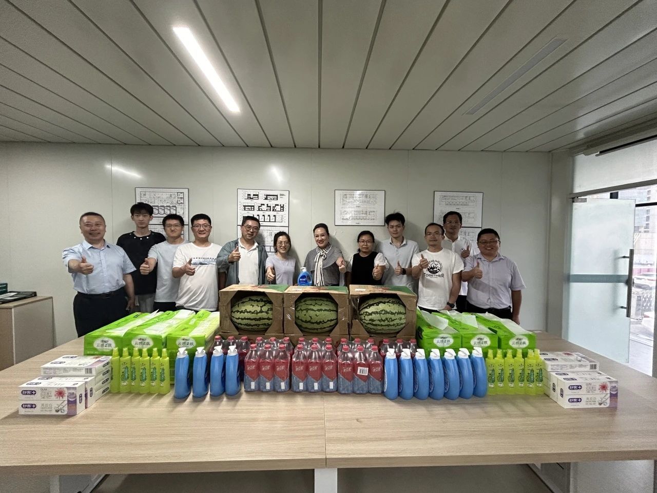 随后,马总为奋战在一线的员工送上了清凉茶、防暑用品、饮料、西瓜等慰问物资,并叮嘱大家注意生产安全,做好个人防护和防暑降温工作,让大家在感受沁人清凉的同时,也体会到企业的暖心关怀。这也标志着SPM2024 年“夏送清凉”活动正式启动。